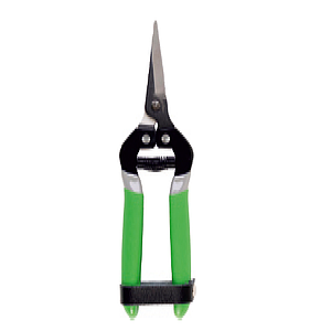 Tijera para la recolección con hoja curva de 17 cm y cuchillas de acero al carbono.